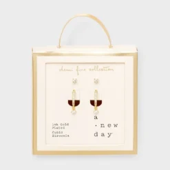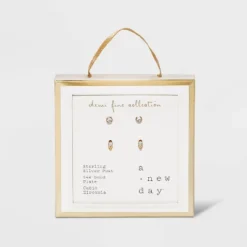 14K Gold Plated Cubic Zirconia Marquise And Dangle Duo Stud Earring Set – A New Dayâ„¢ Gold