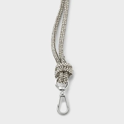 Add sparkling style to your handbag collection with this Handheld Mini-Handbag Strap from A New Day™. With its dual-string design, shiny silver crystal embellishments and chunky knots at both ends, this mini handbag metal strap lets you show off your distinct sense of style. The 11-inch length of the strap allows it to be comfortably held in your hand or looped around your wrist, and the lobster claw clasps make it simple to clip onto your preferred mini handbag for easy customization.