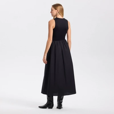 Command attention in this plunge-neck dress from A New Day™. The ponte and poplin fabric combination offers structure and flow, while the U-shaped neckline adds dramatic elegance. The ankle length ensures versatility for both formal events and elevated casual wear.