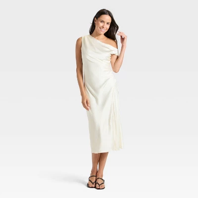 This Off-the-Shoulder Satin Maxi Dress from A New Day™ lets you step out in bold, elegant style. Made of 100% polyester satin fabric, this dress drapes beautifully, and the off-the-shoulder design and side slit provide dramatic touches. You can pair this pull-on dress with your favorite heels or sandals for a variety of casual or dressier occasions.